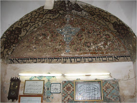 It was reported some months ago that workmen had done 'irretrievable damage' to the shrine when they 'covered over' the inscriptions by accident.The photos taken by Canon White show that the layer of whitewash or plaster covering the lower walls, a feature of the shrine even in Saddam's time, has been stripped back to reveal the original mosaics, floral ornamentation and Hebrew inscriptions. Below, the 'before' photos taken in 2003 show far less of the original character of the shrine than do the 'after' photographs taken by Canon White of the shrine today.