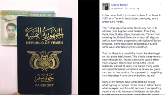 Manny Dahari was born in Yemen and was travelling back to the US - where he is a student - from a family visit in Israel when he was affected by President Trump's travel ban. This article in the Forward explains what happened next, and also gives the background to Manny's prolonged efforts to get the rest of his family out of Yemen - a story which will be familiar to readers of Point of No Return.